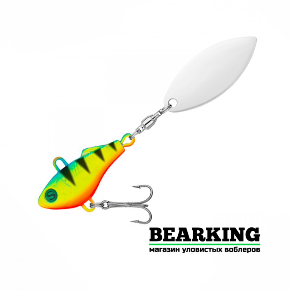 Shimo Spin 40 - небольшой, но увесистый тейлспиннер от компании Sprut. Он имеет вес 21 грамм при длине корпуса 40 мм. Солидная масса улучшает полетные качества приманки и позволяет облавливать дальние дистанции. Кроме того, большой вес помогает тейлспиннеру быстрее добираться до дна водоема. При ловле с Shimo Spin хорошо использовать проводку с касанием грунта. Приманка оснащена вытянутым лепестком. Он хорошо подходит для ловли как на течении, так и в стоячей воде.