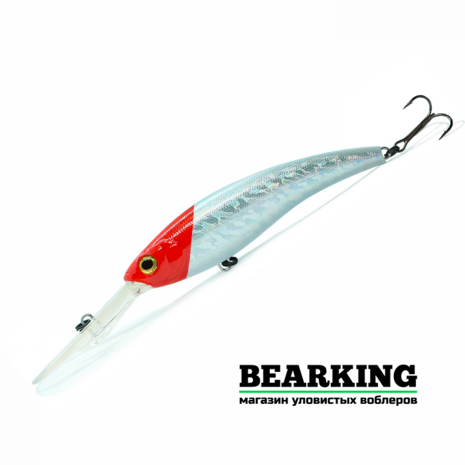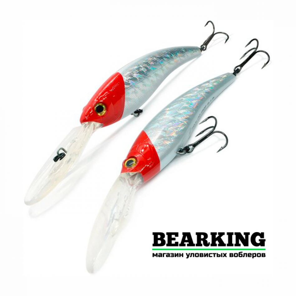 Конфигурация тела приманки напоминает банан, прочная лопасть очень длинная и достаточно широкая, поэтому в воде при проводке воблер совершает очень активные колебания высокой частоты, чем уверенно привлекает хищника. Учитывая большую глубину ловли, весьма весомый вклад вносит шумовая камера воблера, своими звуками дополнительно извещая хищную рыбу о появлении возможного кормового объекта – ведь на глубине хищник больше ориентируется не визуально, а благодаря ощущениям боковой линии, реагирующей на колебания и звук, отлично распространяющиеся в водной среде.