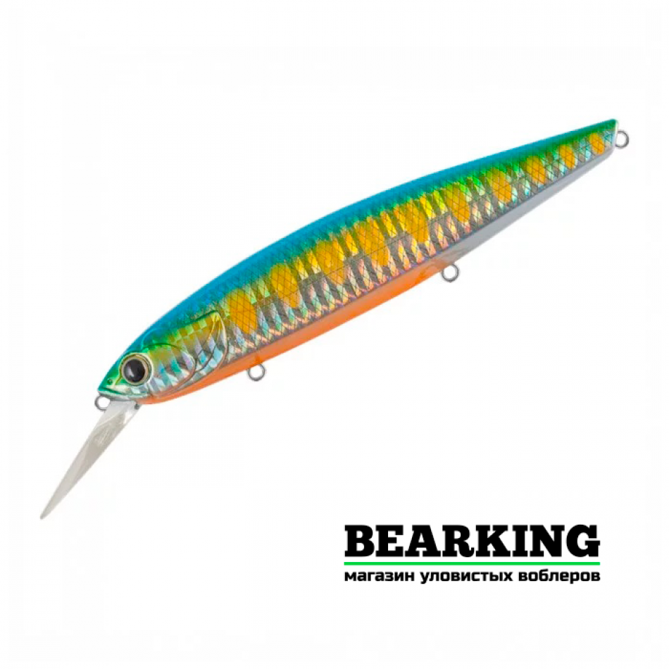 Воблер TsuYoki DRAGA MR 130SP - это крупный минноу для ловли на глубинах до 3,0 метров, над коряжниками и на кормовых поливах. Длина приманки - 130мм, вес - 25,5 грамм, плавучесть - нейтральная (суспендер). Тсуеки Драга Mr 130Sp обладает вытянутой формой тела и овальной лопаткой среднего размера, которая расположена под углом 40 градусов. Тело текстурированное с ромбовидными насечками и выраженными жаберными крышками. Имеет объемные глаза, выступающие как точка атаки и придающие реалистичность приманке. Лакокрасочное покрытие стойкое. Оснащается тройниками Owner усиленной серии. TsuYoki DRAGA MR 130SP великолепно проявляет себя на разного рода рывках. Его можно вести короткими резкими ударами, можно применять размашистые плавные потяжки. Изменяя продолжительность пауз, можно подбирать игру под настроение хищника.