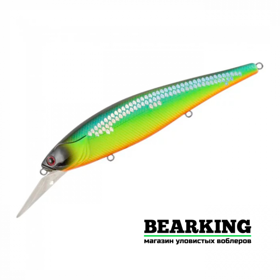 TsuYoki MOVER MR 128SP - это копия на Lucky Craft Pointer 128SP, только с чуть большим заглублением за счет увеличенной лопатки. Технические параметры приманки - длина 128 мм., вес 27,6 гр, заглубление 2-2,5 метра. Тип плавучести - суспендер (SP). Особенности дизайна Тсуеки Мувер MR 128 SP - две, разделенные боковой линией, рельефные фактуры поверхности. Верхняя часть выполнена в виде ромбовидных насечек — чешуек, нижняя (вплоть до брюшка) в виде косых насечек. Головная часть приманки имитирует жаберные крышки рыбки, а 3D глаза дополняют реалистичность дизайна воблера. MOVER MR 128 SP оснащен системой дальнего заброса и баланса. Вооружение приманки – три мощных тройника Cultiva Owner соответствующего размера и надежные заводные кольца. Благодаря солидному весу (27,6 гр), системе дальнего заброса и своей геометрии MOVER MR 128 SP улетает на 35+ метров. Работа с MOVER MR 128 SP должна включать в себя все элементы анимации, доступные для воблеров класса минноу. На равномерной проводке воблер имеет свою собственную игру. Поэтому данный вид анимации нужно обязательно использовать при ловле на данную приманку. Чередование равномерной проводки с паузами, а так же длинные протяжки с паузами (вариации стоп-энд-гоу) – прекрасный способ соблазнить хищника на поклевку.