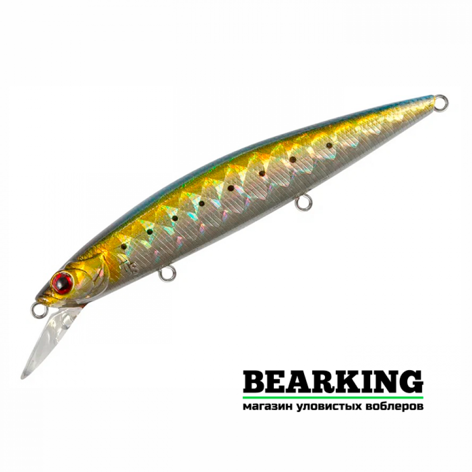 Особенности дизайна: в оформлении поверхности воблера использованы два варианта фактуры: спина гладкая, верхняя часть боков выполнена насечками в виде чешуек, а ниже боковой линии – в виде косых насечек. Головная часть – имитация головы настоящей рыбки, с жаберными крышками и крупными 3D-глазами. Общий стиль приманки весьма реалистичный. Воблер оснащен тремя острыми тройниками и силовыми заводными кольцами. Имеется система баланса и система дальнего заброса в виде стальных шаров, которая одновременно и является шумовой камерой. Воблер достаточно громкий, при проводке привлекает рыбу не только своей игрой, но и ярко выраженным шумовым сопровождением. ЛКП соответствует лучшим образцам современного воблеростроения.