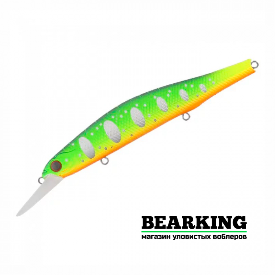 TsuYoki Watson MR 110SP - это копия на самый популярный на сегодняшний день щучий минноу ZipBaits Orbit 110SP, только с чуть большим заглублением чем оригинал от японской компании Зип Бэйтс. Тсуеки Ватсон MR 110SP оснащен магнитной системой дальнего заброса и системой балансировки. Лакокрасочное покрытие соответствует самым высоким современным стандартам. На приманке установлены три высококачественных тройника. Воблер обладает хорошими полетными характеристиками, стабильно улетает к отметкам 40-45 м. Для данной приманки применимы все варианты проводок, от равномерной до рывковой. На равномерной проводке воблер имеет выраженную собственную игру, активно раскачиваясь с боку на бок и виляя хвостовой частью. При проводке стоп-энд-гоу Watson MR 110SP устойчиво зависает на паузе, качнув пару раз боками. На рывковой анимации воблер уходит в сторону, разворачиваясь на 90 градусов, и эффектно зависает в толще воды.