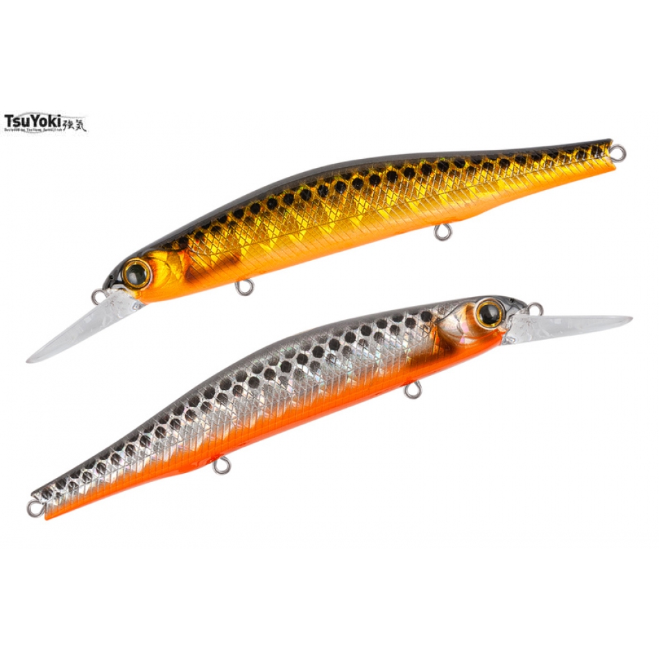 TsuYoki Watson MR 110SP - это копия на самый популярный на сегодняшний день щучий минноу ZipBaits Orbit 110SP, только с чуть большим заглублением чем оригинал от японской компании Зип Бэйтс. Тсуеки Ватсон MR 110SP оснащен магнитной системой дальнего заброса и системой балансировки. Лакокрасочное покрытие соответствует самым высоким современным стандартам. На приманке установлены три высококачественных тройника. Воблер обладает хорошими полетными характеристиками, стабильно улетает к отметкам 40-45 м. Для данной приманки применимы все варианты проводок, от равномерной до рывковой. На равномерной проводке воблер имеет выраженную собственную игру, активно раскачиваясь с боку на бок и виляя хвостовой частью. При проводке стоп-энд-гоу Watson MR 110SP устойчиво зависает на паузе, качнув пару раз боками. На рывковой анимации воблер уходит в сторону, разворачиваясь на 90 градусов, и эффектно зависает в толще воды.
