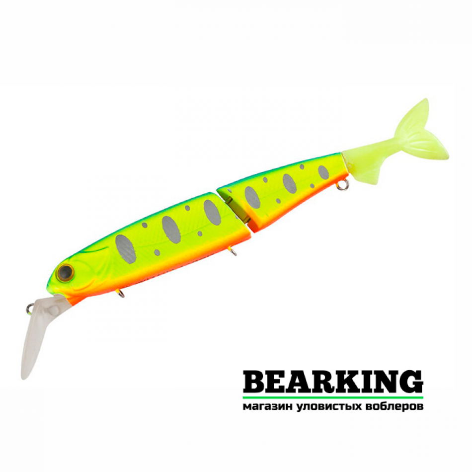 Начать обзор приманки стоит с внешнего вида. TsuYoki Witch 118SP имеет две отдельные части, которые скреплены между собой специальными кольцами. Именно из-за такого решения, во время проводки, каждая секция будет двигаться отдельно, создавая впечатление действительно живой рыбки. Лопатка расположена фактически под прямым углом вниз и немного выступает за рамки головы. По всей области имеются рельефные насечки, которые напоминают чешую. Спинка и брюшко гладкие. Глаза будто настоящие, поэтому у хищника и вовсе не возникнет никаких подозрений. Отдельного внимания требует хвостик, который изготовлен из силикона и чем-то напоминает щучий, такой же разветвленный и широкий.