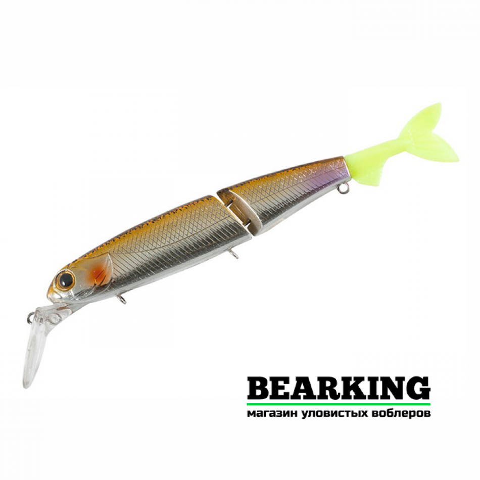 Начать обзор приманки стоит с внешнего вида. TsuYoki Witch 118SP имеет две отдельные части, которые скреплены между собой специальными кольцами. Именно из-за такого решения, во время проводки, каждая секция будет двигаться отдельно, создавая впечатление действительно живой рыбки. Лопатка расположена фактически под прямым углом вниз и немного выступает за рамки головы. По всей области имеются рельефные насечки, которые напоминают чешую. Спинка и брюшко гладкие. Глаза будто настоящие, поэтому у хищника и вовсе не возникнет никаких подозрений. Отдельного внимания требует хвостик, который изготовлен из силикона и чем-то напоминает щучий, такой же разветвленный и широкий.
