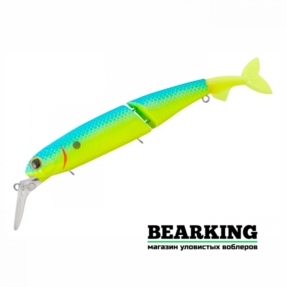 Начать обзор приманки стоит с внешнего вида. TsuYoki Witch 118SP имеет две отдельные части, которые скреплены между собой специальными кольцами. Именно из-за такого решения, во время проводки, каждая секция будет двигаться отдельно, создавая впечатление действительно живой рыбки. Лопатка расположена фактически под прямым углом вниз и немного выступает за рамки головы. По всей области имеются рельефные насечки, которые напоминают чешую. Спинка и брюшко гладкие. Глаза будто настоящие, поэтому у хищника и вовсе не возникнет никаких подозрений. Отдельного внимания требует хвостик, который изготовлен из силикона и чем-то напоминает щучий, такой же разветвленный и широкий.